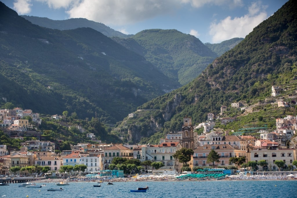 アマルフィはまた、チンクエテレよりも幅広い料理体験を提供しています。カメラは、家族経営のトラットリアから、見事な海の景色を望む複数のミシュランの星付き施設に至るまで走ります。