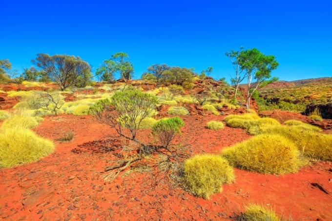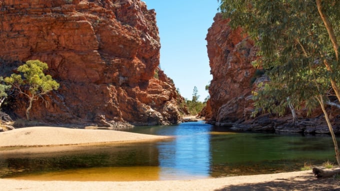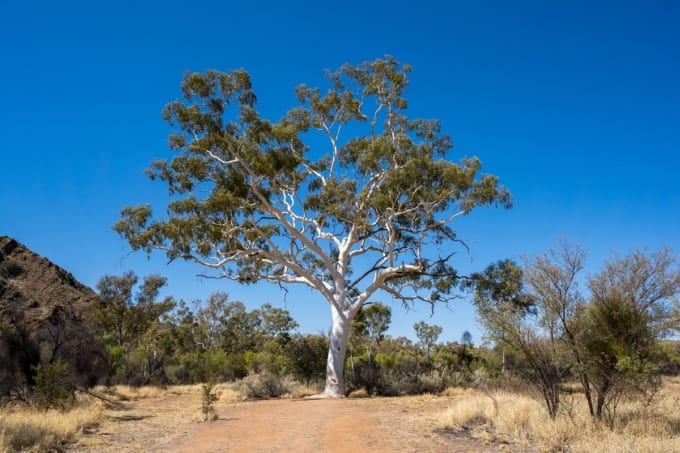 中央オーストラリアでは、山脈から流れ落ちる水のおかげで、岩だらけの地形でも森林地帯を支えることができます。