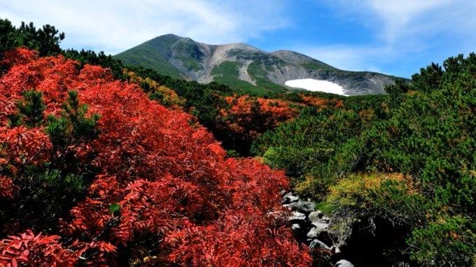 ノリクラ山には、落葉樹、針葉樹、高山の植物があり、秋の色を自然な光景にしています。 9月からサミットの近くで始まり、葉は徐々に変化し、山をカスケードします。鮮やかな赤と黄色は、ノリクラ山に広がるにつれて、ほとんど生きているように見えます。