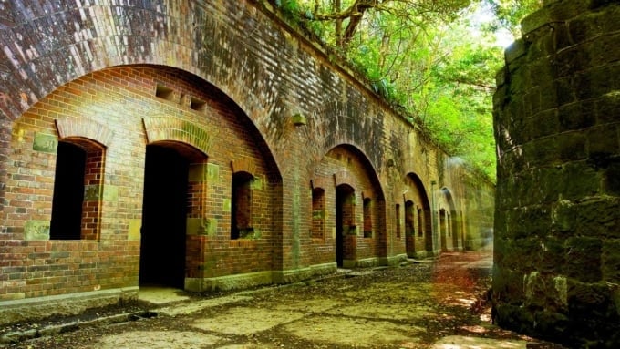 それらの中で最も有名なものである3番目のバッテリー遺跡は、トモガシマの砲兵隊の最大の場所です。緑豊かな緑の植生と風化した赤みがかったレンガのコントラストは視覚的に印象的であり、理想的な写真スポットになっています。インテリアも自由に探索できるので、時間をかけてサイトをさまようことを楽しんでください。