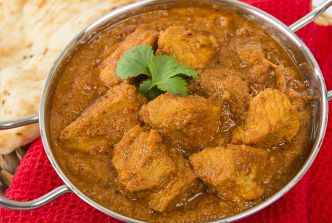 インドカレーの中で最も世界的に有名なのがバターチキンです。比較的新しい発明で、1950 年代にデリーの有名なレストラン、モティ マハルのキッチンで誕生しました。一見シンプルな料理ですが、骨なしの鶏肉をバターたっぷりの濃厚なトマトグレービーソースに加えます。バターチキンは何十年にもわたってグルメ愛好家を魅了しており、今でも試してみると最も満足のいくカレーの 1 つです。