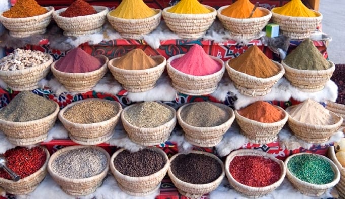 スパイスは重量で販売されています。表示された価格は1キログラムあたりですが、わずか100グラム以下を購入できます。自分でバッグにしたい金額を自分で撮影するか、店員にジェスチャーをすることができます。スーパーマーケットやスークでは、スパイスは通常、ビニール袋に入れられていますが、アターショップでは、一部の店ではポーチで適切に密閉されます。推奨される選択肢には、黒胡pepper、ターメリック、クミン、チリパウダー、カルダモン、ミックススパイス、シナモンスティックなどの安全なステープルが含まれます。珍しいスパイスもたくさんありますので、いくつかを買って試してみるのは楽しいです。