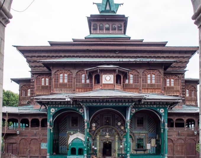 その外観は寺院を彷彿とさせるかもしれませんが、華やかなシャンデリアや輝く金模様の壁紙を備えた豪華な内装は、シュリーナガルの多様な宗教の歴史を反映したヒンズー教のデザインの影響も感じさせます。その荘厳な存在感は、この街のユニークな文化遺産の真の証です。