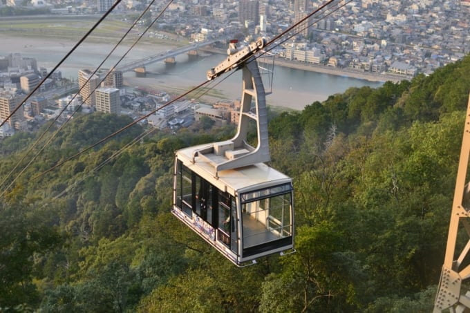 金華山ロープウェイは 1954 年に設立され、戦後に建設された日本初の空中ロープウェイとして知られています。ロープウェイは岐阜公園から金華山山頂までをわずか4分で結びます。