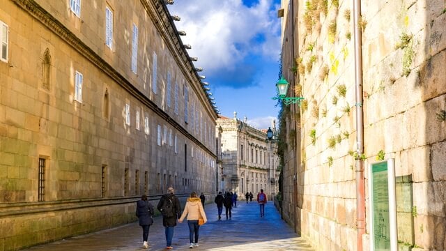サンティアゴ デ コンポステーラの旧市街は、土産物店や歴史的建造物が立ち並ぶ曲がりくねった石畳の通りの迷路です。独特の雰囲気と豊かな遺産により、他の都市と比べて圧倒的な存在感を持っています。サンティアゴ デ コンポステーラ大聖堂を中心とするこの歴史的エリアは、ユネスコの世界遺産に指定されています。