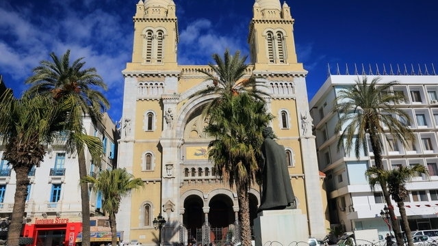 モスクが多数を占めるチュニスでは、サン ビンセント デ ポール大聖堂は珍しいカトリック教会です。 1893 年から 1897 年にかけて建設されたこの大聖堂は、1997 年にファサードを含む大規模な改修が行われ、翌年にはローマ法王が訪問しました。