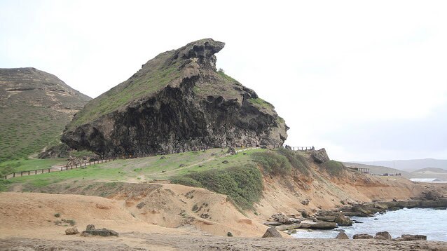 サラーラから約 40 km のマルニーフ洞窟は、この地域で最も人気のある観光スポットの 1 つです。その名前にもかかわらず、これは実際の洞窟ではなく、長い年月をかけて浸食されて形成された大きな岩の形成です。この場所へはビーチ沿いの木の遊歩道を通ってアクセスでき、そこから階段を上がると岩の下のベンチに着き、そこに座って素晴らしいビーチの景色を楽しむことができます。