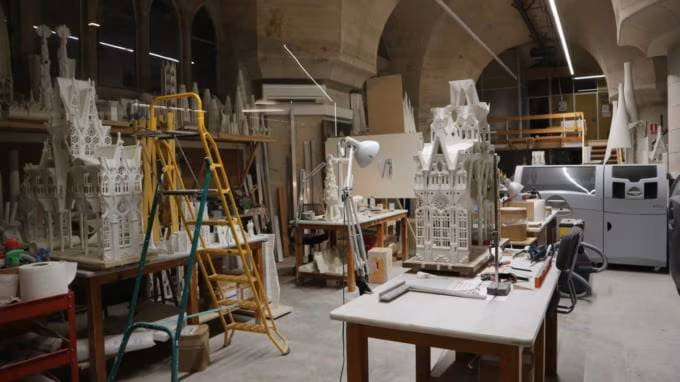 かつては完成までに約300年かかると言われていたサグラダ・ファミリアの建設スケジュールは大幅に短縮された。当初はすべてのモデルや設計図が手作業で作成されていましたが、IT技術の進歩により、現在では3D設計やCGを使用して最終構造の視覚的な投影を作成できるようになりました。