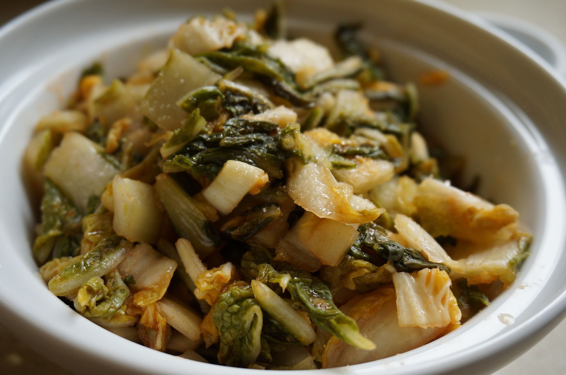 韓国料理と文化の礎石であるキムチは、ナパキャベツまたは大根で最も一般的に作られており、唐辛子、ニンニク、生inger、魚のソース、塩で味付けされた発酵野菜料理です。