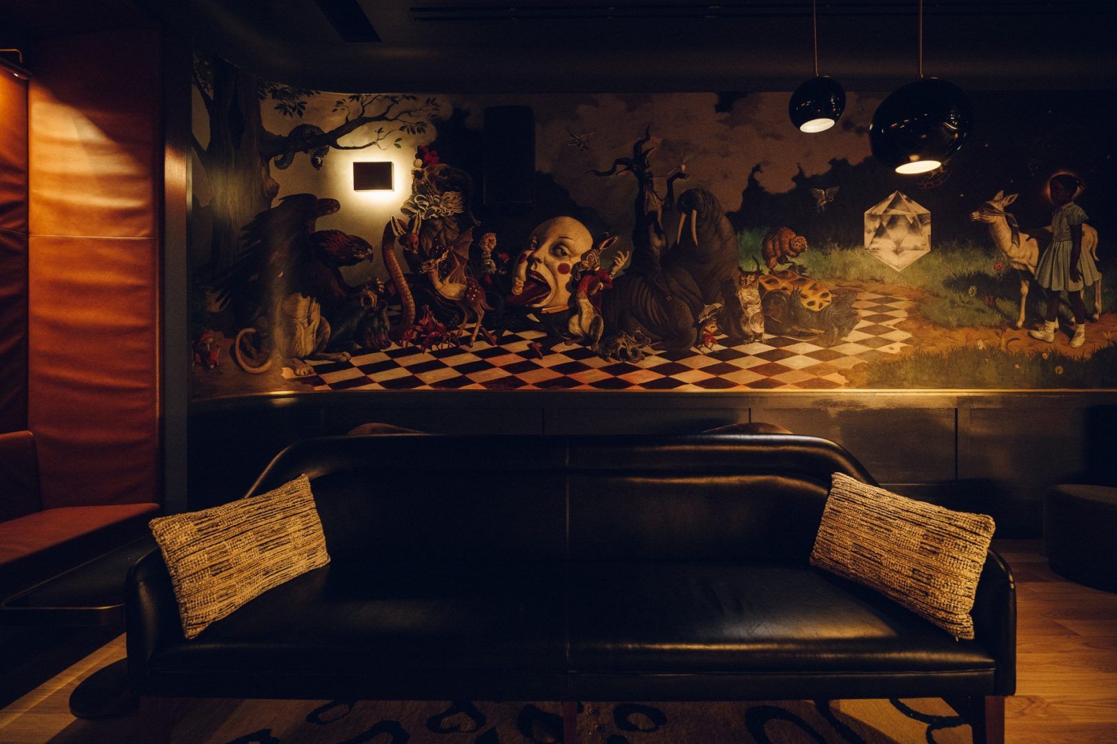 この美しいバーに向かい、壮大なカクテルには社会的良心の順序が並んでいます。最初の活動家のホテルとして自称したイートンのUSPには、草の根の活動主義、寝室での国連人権宣言(聖書の代わりに)のコピー、ゲストのための無料の気分向上クリスタルをサポートする社内ラジオ局が含まれています。all話、ホテルの図書館の本の中に隠されたドアからアクセスされ、最も壮観な場所です。巨大なラップアラウンドの壁画に支配された美しいバーです。一見、不思議の国のアリスをフィーチャーしているように見えますが、絵画の少女は実際には公民権活動家ルビーブリッジスであり、1960年にルイジアナ州の全白人ウィリアムフランツ小学校に出席した最初のアフリカ系アメリカ人の生徒になったことで有名です。