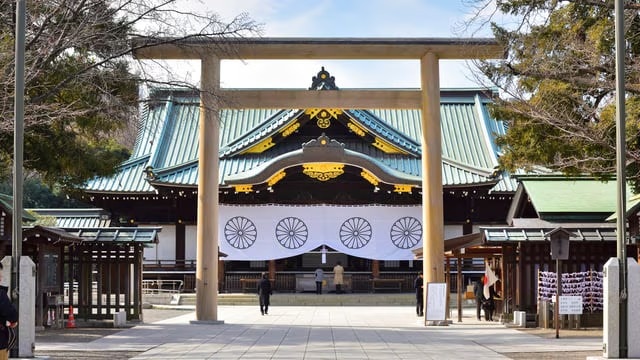 千代田区九段にある靖国神社は、日本の戦没者の英霊を祀ることを目的としています。 1869年(明治2年)に「招魂社」として建立され、2019年に創建150周年を迎えました。桜の名所としても知られ、正月やお盆はもちろん、早春にも多くの参拝客で賑わいます。江戸城田安門前の第一鳥居は日本最大級!二の鳥居は国内最大の青銅鳥居でもあります。