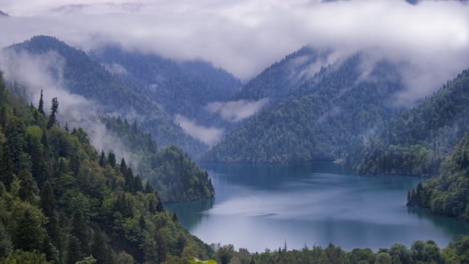 リツァ湖としても知られるリカ湖には、かつてリツァという名前の少女を救おうとして投げ込まれた剣によって強制的に水が満たされた谷だったという伝説があります。この湖はジョージア州北部のコーカサス山脈に囲まれています。この青い水の湖には 6 つの川が供給されていますが、排水されるのは 1 つだけです。ウォーターアクティビティ以外にも、山脈の奥深くにあるアトラクションも観光する価値があります。このエリアを探索するのは、耐えられないほど寒くない 7 月から 8 月が最適です。