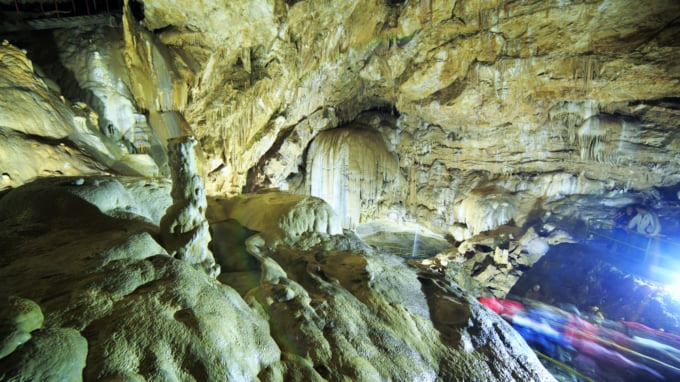「底なしの穴」として多くの人に知られている新しいアトス洞窟は、イベリア山の中にある巨大な洞窟システムです。この洞窟はジョージア州で最大、世界でも 2 番目に大きく、地下の川、鍾乳石、渓谷、石筍を特徴とする 9 つの広大な部屋があります。洞窟には観光用に短い鉄道が設置されていますが、電車を降りて、ライトアップされた歩道を通って洞窟を探索することもできます。洞窟は主要な観光名所なので、事前にチケットを予約する必要があります。また、気温は10℃と低いため、暖かい服装でお越しください。