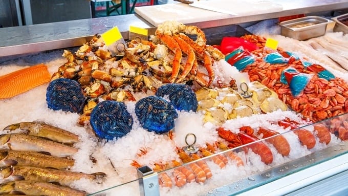 沸騰したエビは必見です!口の中に皮をむいてポップしてください。自然な甘さが広がり、食べるのをやめるのが難しくなります。その他のオプションには、カニの肉とサーモンのサンドイッチがあり、その場で楽しむことができ、ウォーキングフードツアーに最適です。