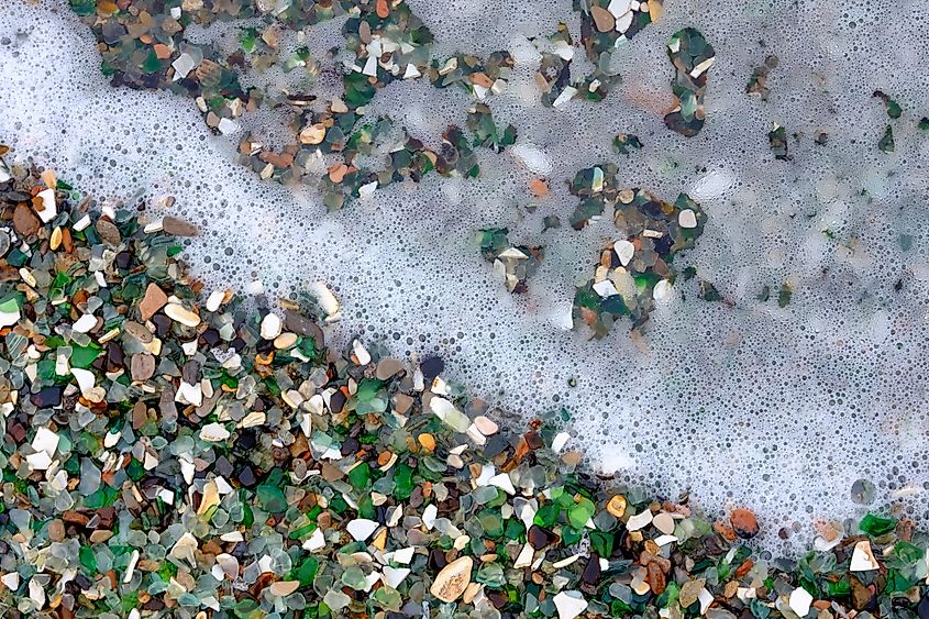 磨かれたガラスの小石は、ガラスビーチを訪れる観光客にきれいな光景を提供します。
