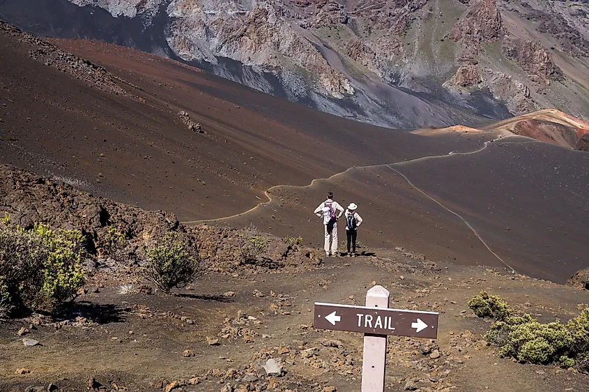 標高 10,000 フィートでのハイキングは、慣れているよりも少し疲れますが、あらゆるスキル レベルに合わせた選択肢がたくさんあります。高地での長距離ハイキングに不安がある人は、より簡単な方として、火口の景色を眺めるために 0.4 マイルのパー カオアオ トレイルを歩くこともできます。もう少し標高の低い場所で火口の底までハイキングするのが好きなら、ハレマウウ トレイルは見晴らしの良い場所まで 1 マイル強の距離にあり、頂上地区のハイキングコースほど高くはありません。あるいは、下ったものは必ず戻ってくるということを念頭に置きながら、そのまま火口底まで進むこともできます。帰りはかなり大変で、わずか数マイルで 1400 フィートの高度が得られます。全長 11 マイルのスライディング サンズ トレイルでは、シルバーソードを見つける最高のチャンスと、別世界のような山頂地区の最も包括的な体験が得られます。