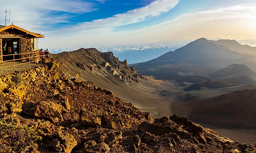 ハレアカラ国立公園では、火山の火口を見下ろす雲の上から日の出を見ることができます