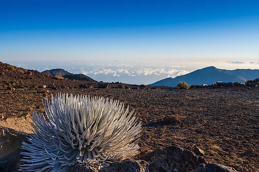 ハレアカラの多くのユニークな植物種の中で際立っているのは、シルバーソードです。ポンポンのような見た目に騙されないでください。銀の剣、または「アーヒナヒナ」は真の生存者です。彼らは、ハレアカラ山頂の灼熱と容赦ない露出の中で最長90年生きることができ、この過酷な環境が彼らに投げかけるほぼすべてのことに耐えます。最も派手なわけではありませんが、知識のある人にとっては、シルバーソードは公園内で最も注目に値する光景の 1 つです。