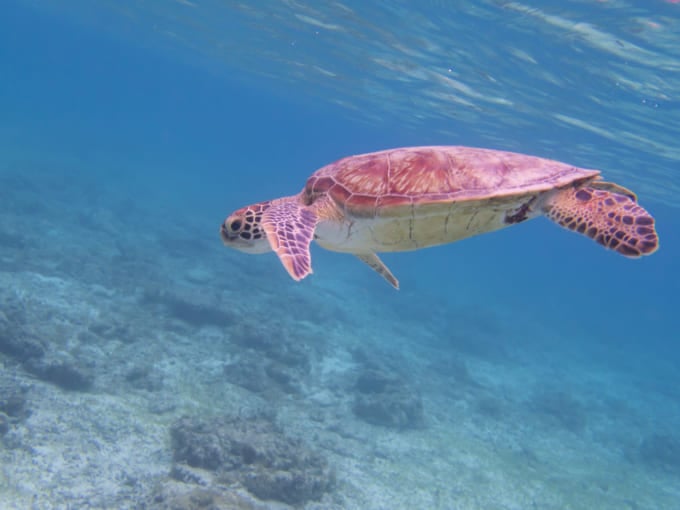 ニシ浜でシュノーケリングをするとウミガメや様々な魚に出会えるかもしれません。