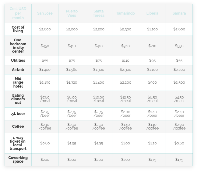 コミュニティ自身の経験に基づいて、コスタリカのデジタル遊牧民のホットスポットでの生活費の概要を編集しました。このテーブルは、コスタリカでデジタル遊牧民になる方法を考えている場合、便利な情報です。