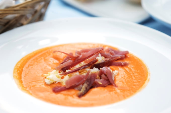 より有名なガスパチョと同様に、サルモレホは、その料理のいとこよりも濃厚でクリーミーな味わいの冷製スープです。この料理は実際には非常にシンプルで、新鮮なトマトにニンニク、パン、高品質のオリーブオイル、酢をブレンドします。サルモレホには、特に暑い夏の日にはとても心地よいものがあるため、ガスパチョよりもサルモレホの方が好きです。多くのレストランでは、さらに快適な要素を加えるために、ハモンセラーノや砕いたチーズを料理にトッピングします。