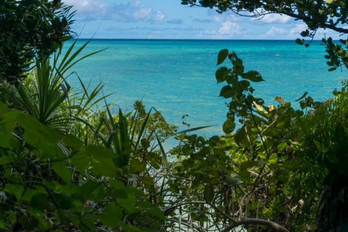 階段を上り、小道を歩いていくと、美しいビーチが広がるエリアに到着します。