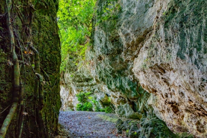 鍾乳洞の中は天井高10メートルを超える広々とした空間が広がっています。高い天井からつり下がる巨大な鍾乳石と多数のサンゴは必見。地層の中には古代の貝殻やサンゴの化石も含まれているので、じっくり観察してみてください。