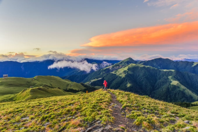 清境農場エリア内には、中程度のコースから短いコースまで、素晴らしいハイキング コースが数多くあります。最も美しい景色の 1 つを求めるには、明るいうちに清境の夕日小道へ向かいましょう。トレイルは約 30 分続き、遠くに沈む夕日とともに下の渓谷の素晴らしい景色を眺めることができます。