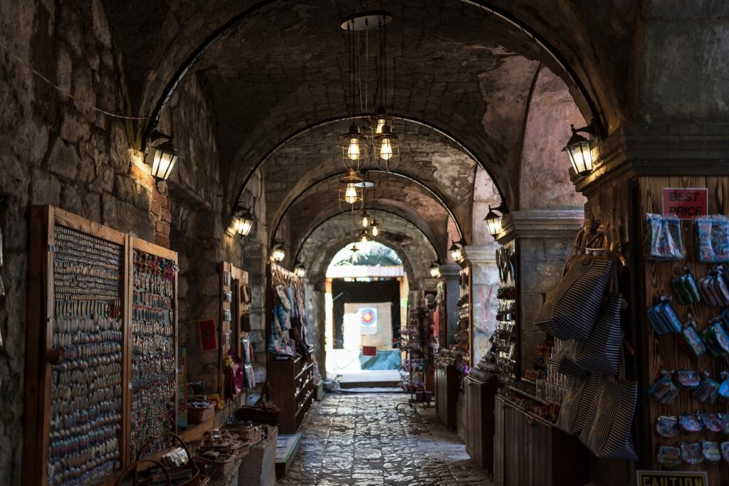 旧市街の最も絵のように美しい場所の 1 つに位置する小さなコトル バザールは、ガレリヤ ティシアンとしても知られ、少し観光客向けではありますが、お土産を購入するのに最適なスポットです。