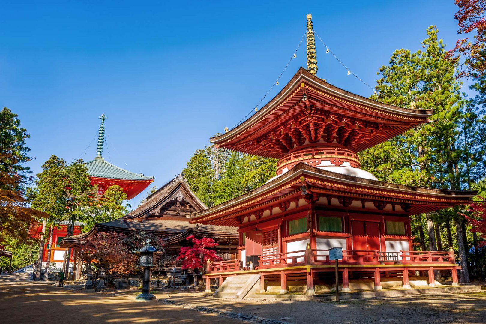 宿坊に泊まって夜明けの祈祷を受けるのも楽しみの一つです。その後、山の精神的な中心である伽藍へ向かうか、奥の院墓地に点在する何千もの古墳や記念碑の間を散策します。ここの弘法大師の霊廟には、石油を燃料とする 1 万個の真鍮の灯籠が灯されています。