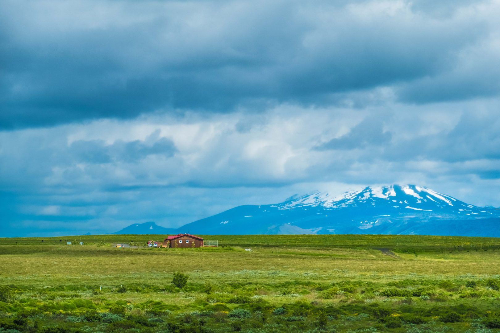 レイルバッキは、ヘクラ山麓に点在する数少ない農場の 1 つです。ヘクラ火山は、9 世紀にヴァイキングがアイスランドに定住して以来、定期的な噴火によって壊滅的な被害をもたらしてきた高さ 1500 メートルの火山です。蒸気を立てて切り裂かれたクレーターは、かつては地獄への入り口であると信じられていました。