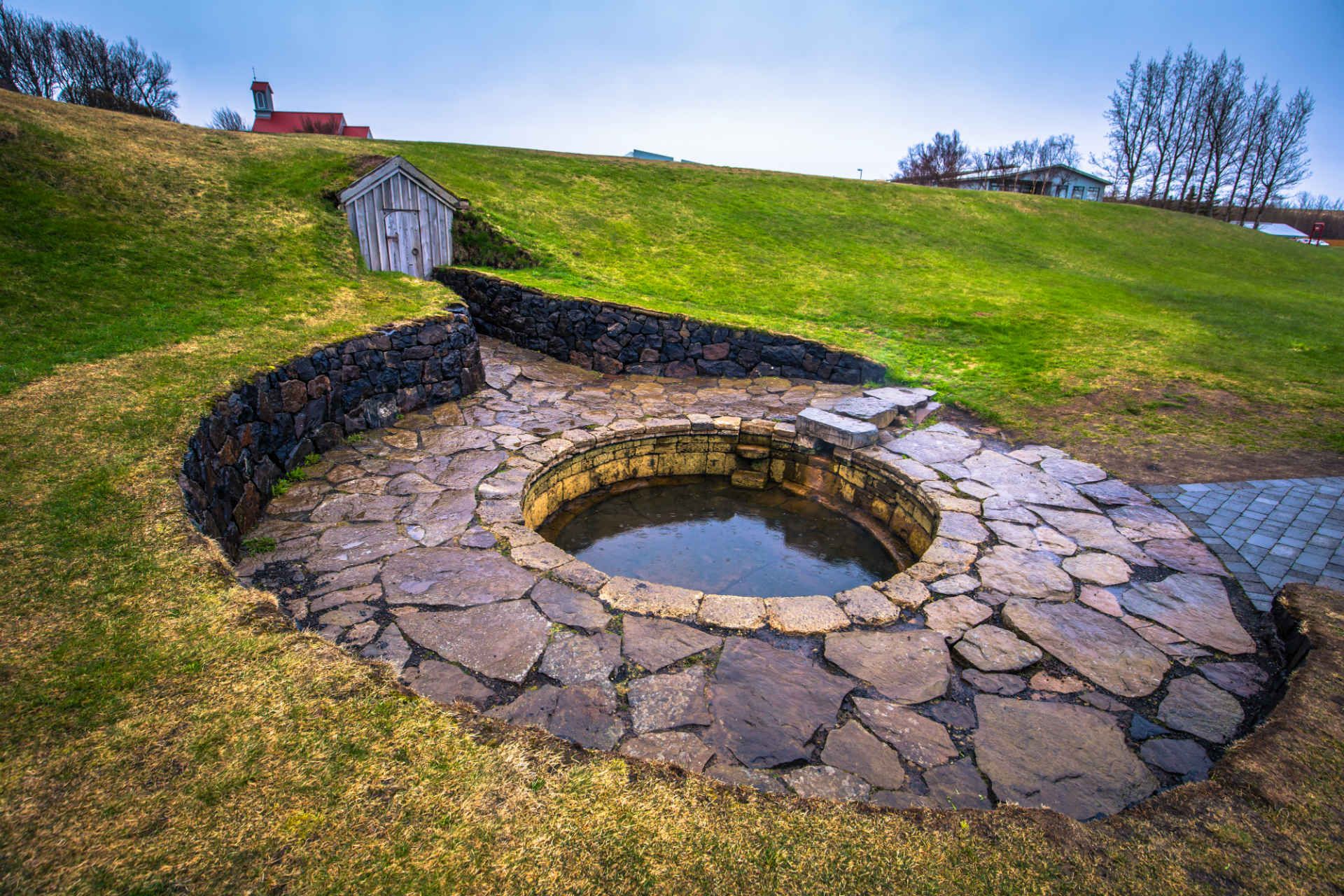スノッリの陰謀は最終的に彼の暗殺につながりました。彼はレイキャビクの北西にあるここレイクホルトの地下トンネルで殺害されました。そこでは、温度が許せば、彼がかつて使用していた温水プールに今でも入浴することができます。