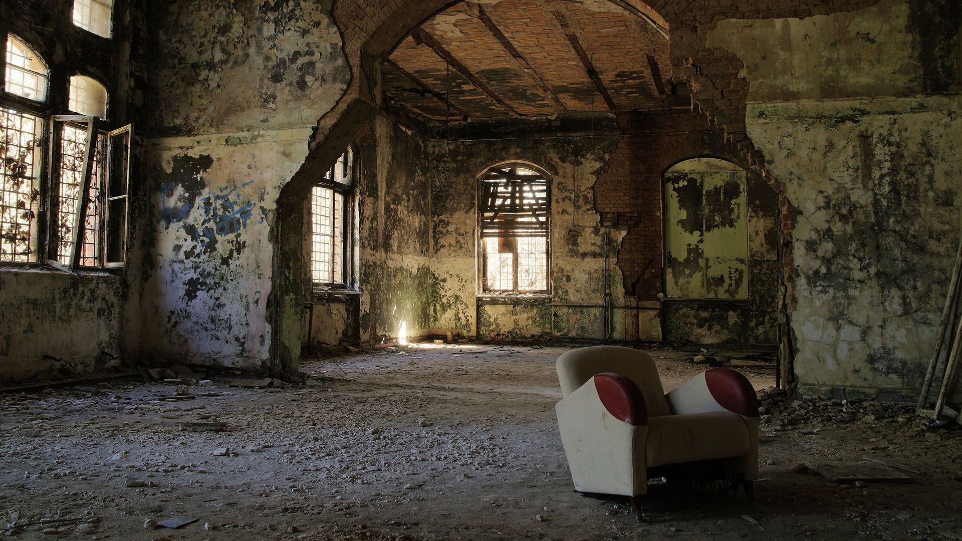 ベルリンにあるこの軍事病院は、人気のない廊下と空の患者病棟の腐った死骸で、かつてはドイツとソ連の兵士を収容していましたが、1990 年代後半以降、ほとんど使用されていません。遺棄されているかもしれないが、完全に放棄されたわけではない。地面に散らばった空のボトルやゴミは、日和見的な略奪者のさまざまなグループを示唆しています。週末の放浪者、好奇心旺盛な旅行者、インスピレーションを受けた写真家は、この瀕死の場所の朽ち果てた美しさに惹かれます。