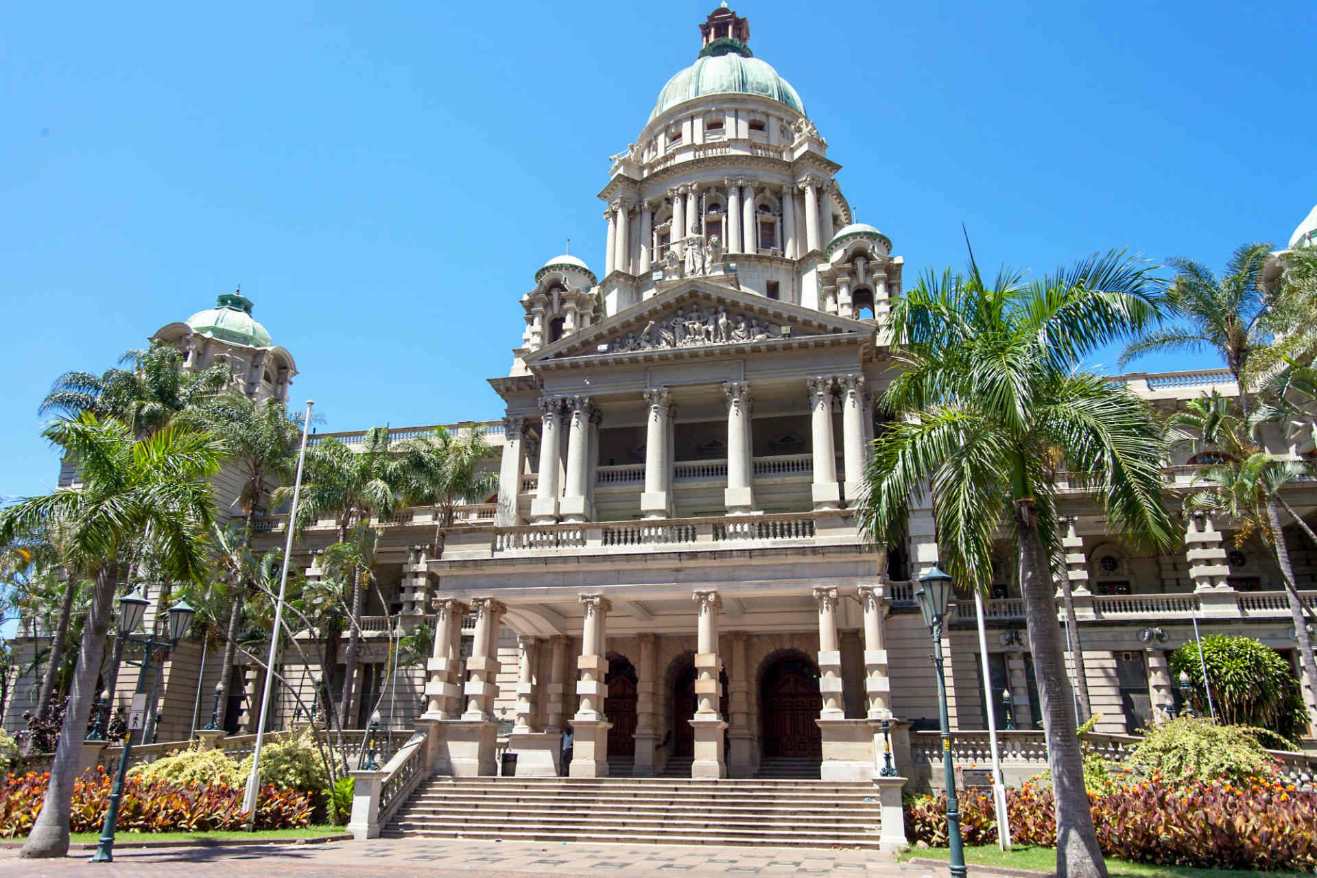ダーバンのネオバロック様式の市庁舎がそびえるフランシス フェアウェル スクエアで、歴史を学びましょう。ここは、ズールー族のシャカ王から割譲された土地に 1824 年にポート ナタールの湿地帯の交易所が設立された場所です。 1899 年、ウィンストン チャーチルはボーア戦争捕虜収容所からの脱出の物語を語るために市庁舎の階段を上りました (その場所には銘板が付けられています)。