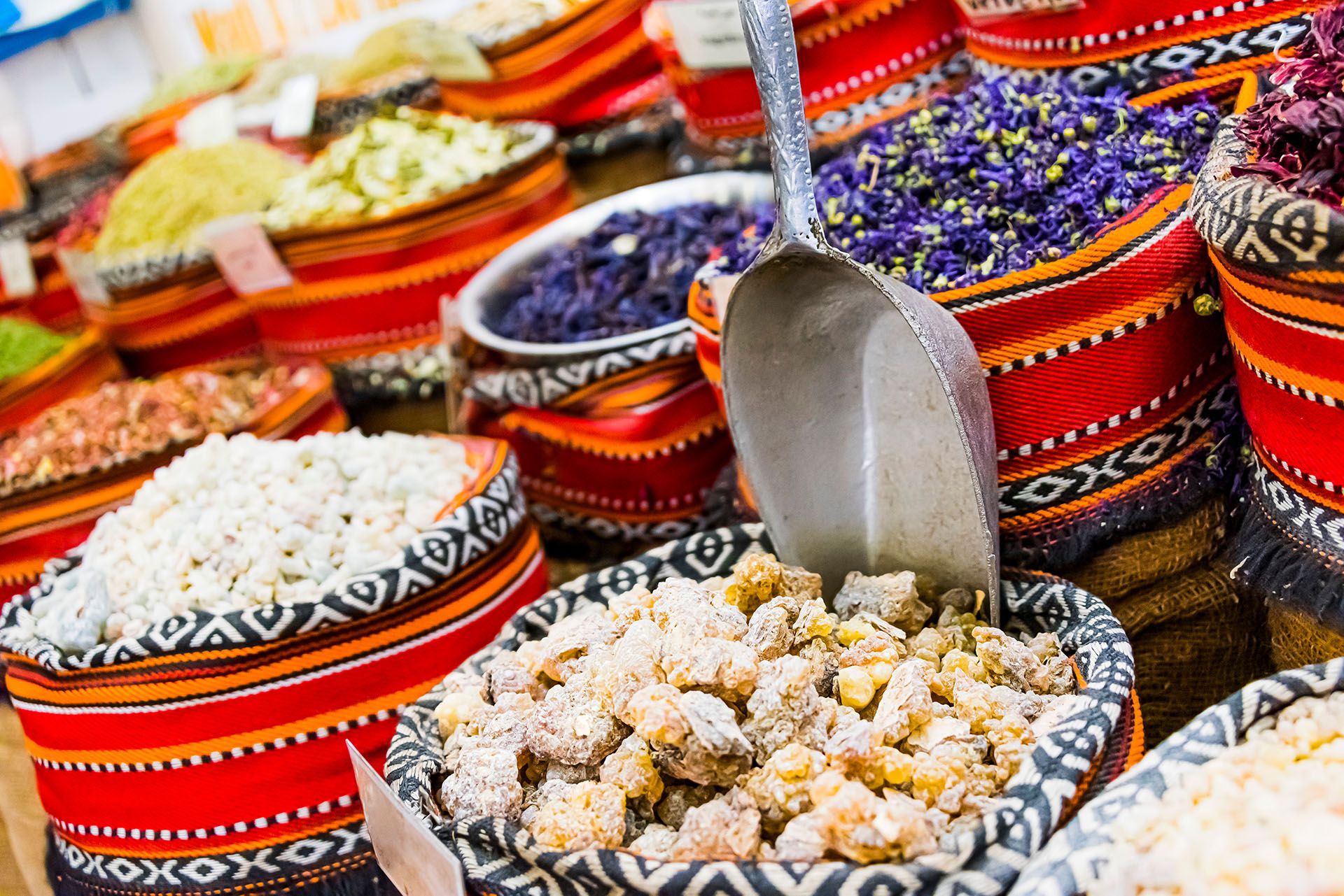 アブダビの世界貿易センターモールの屋内スークで販売されているスパイスとフレーバー © Shutterstock
