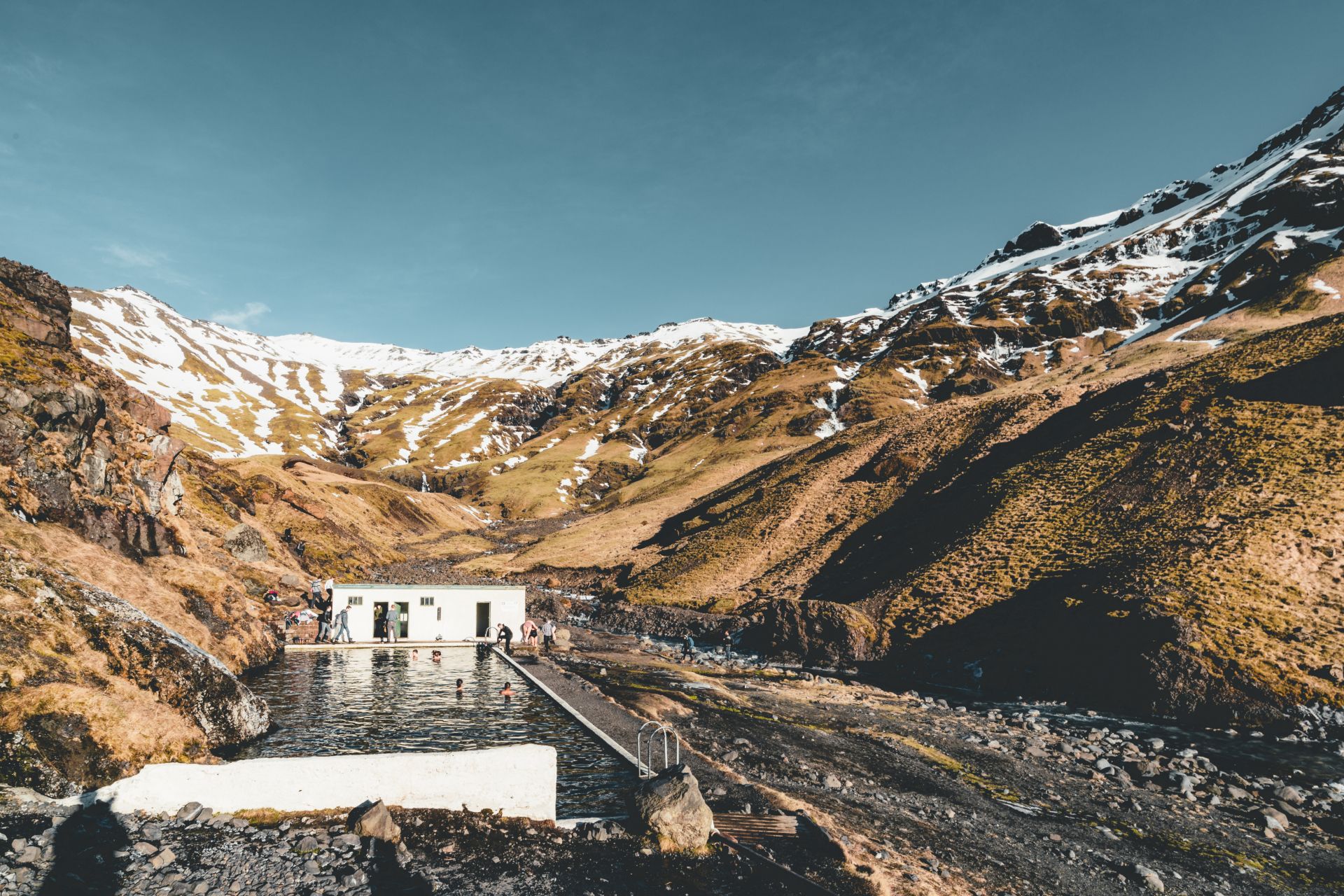 アイスランド南部、レイキャビクとヴィークの間にあるセルジャヴァララウグは、まさにそれを実現するのに最適な場所です。屋外スイミングプールは無料で24時間オープンしています。ここはアイスランドで最も古いプールの 1 つでもあります。
