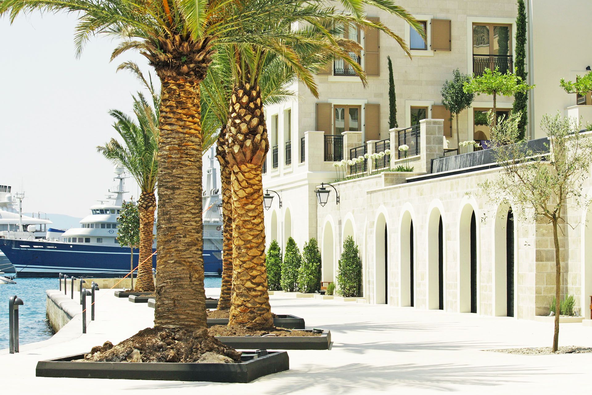 モンテネグロのマリーナ・ポルト・モンテネグロの晴れた日のヤシの木 © Shutterstock