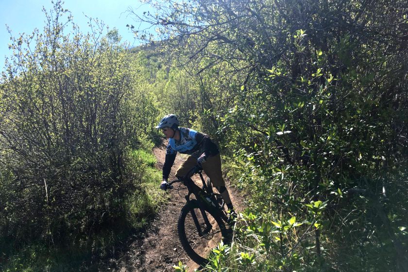 ワサッチマウンテン州立公園を約30分間レースしています。雪に覆われたピークは、下の谷から上昇し、モミとトウヒの木の間に蛇行するときに視界を描いています。木が溶けていくと、純粋なドロップが自分自身を知らせます。私は泥だらけの爪を私の席にさらに掘ります。
