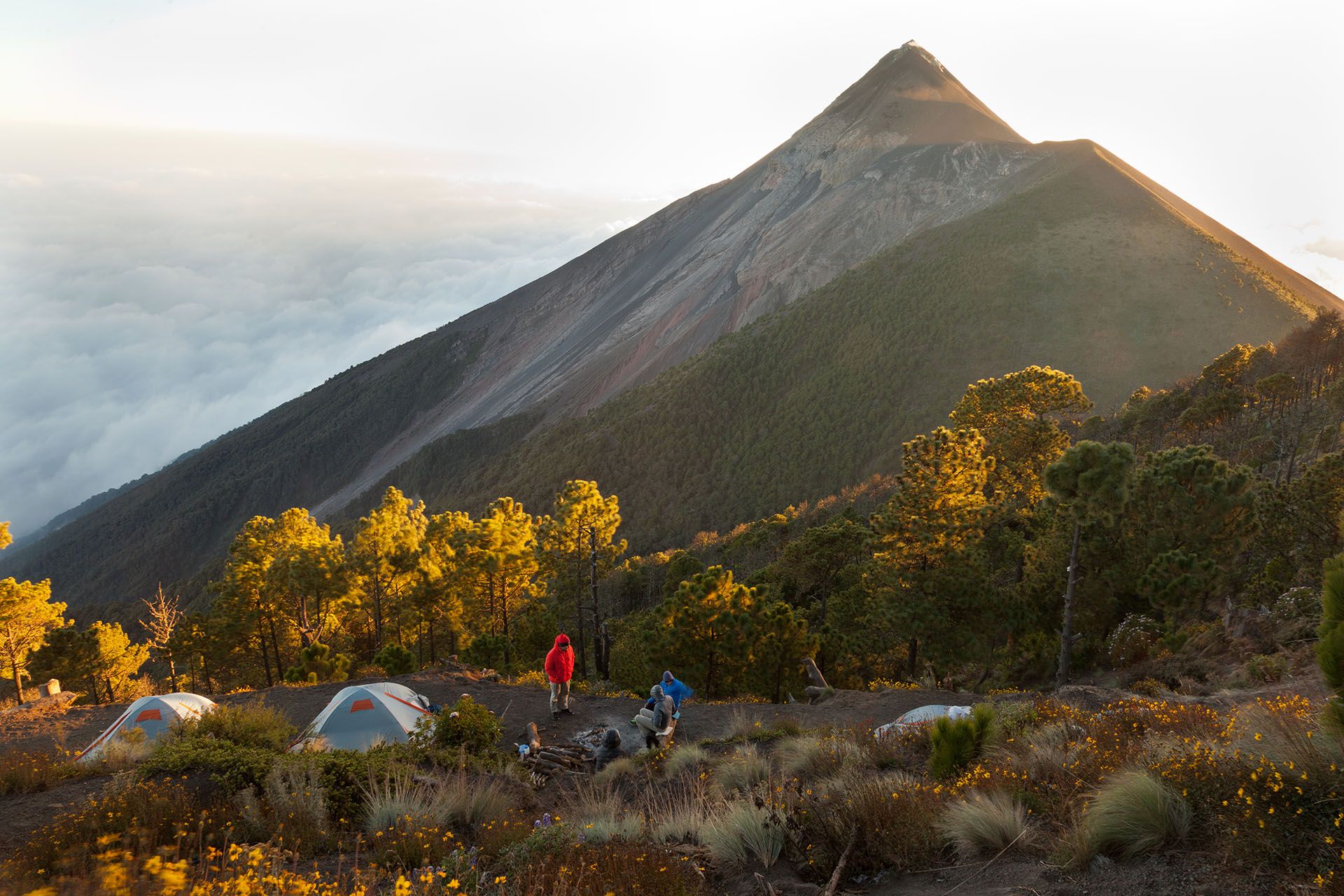 標高約 3800 メートルにあるこのキャンプからは、世界で最も活発な火山の 1 つであるフエゴ火山が見渡せます。
