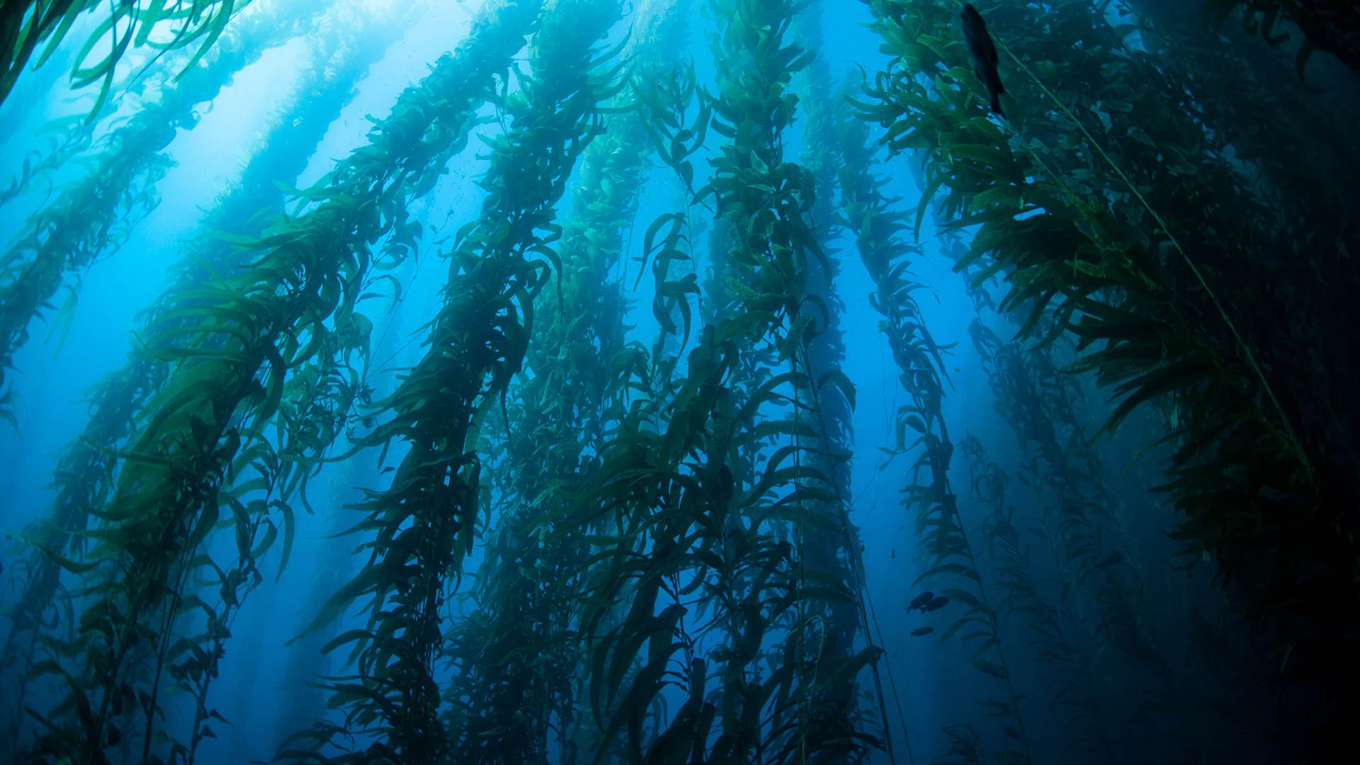 ジャイアントケルプ(マクロシスティスピリフェラ)は、カリフォルニアの水路諸島近くの厚い水中の森で育ちます©Ethan Daniels/Shutterstock
