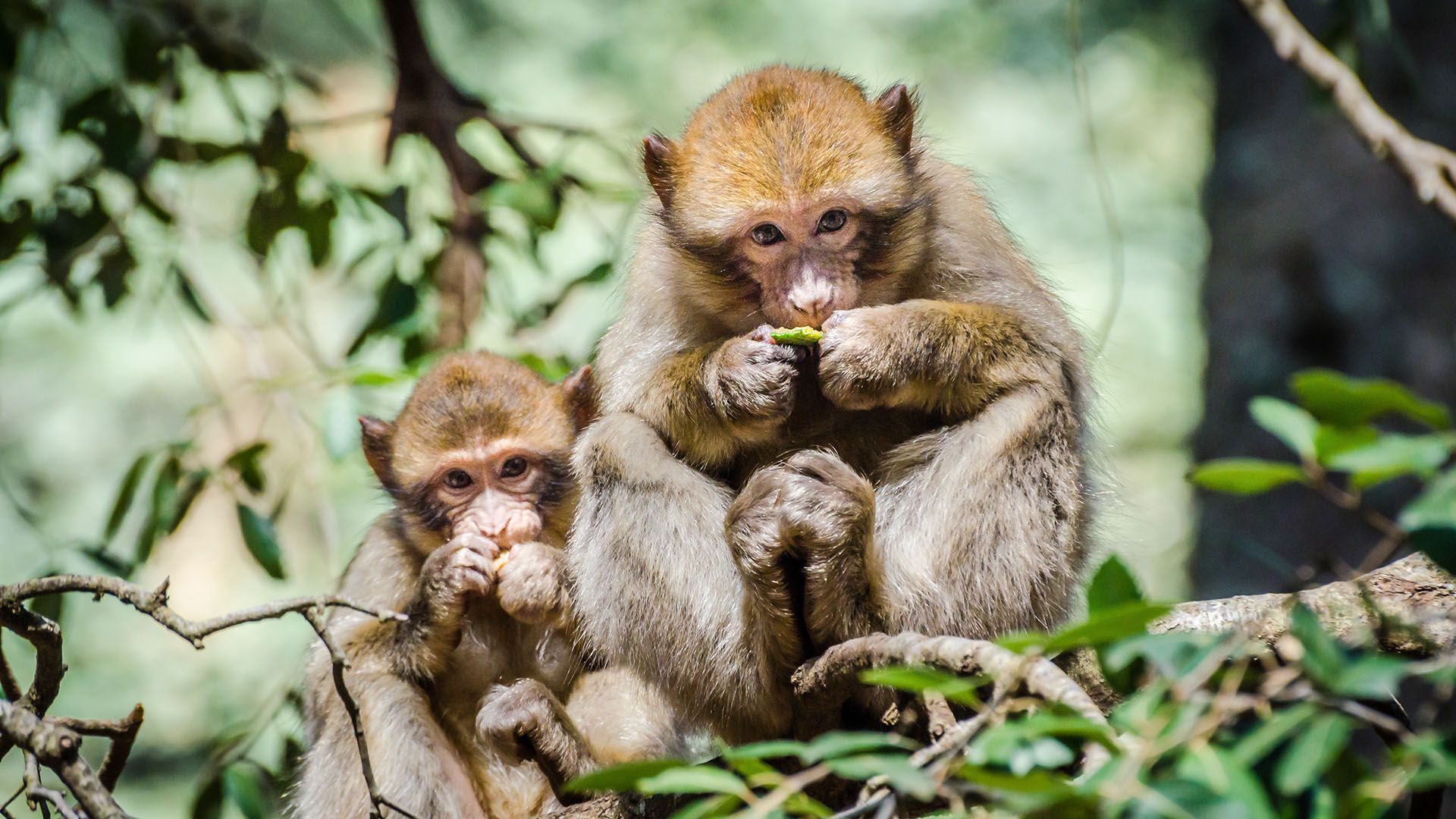 モロッコのアズルー近くの杉の森に住んでいるマカクペスファミリー©Marketa1982/Shutterstock