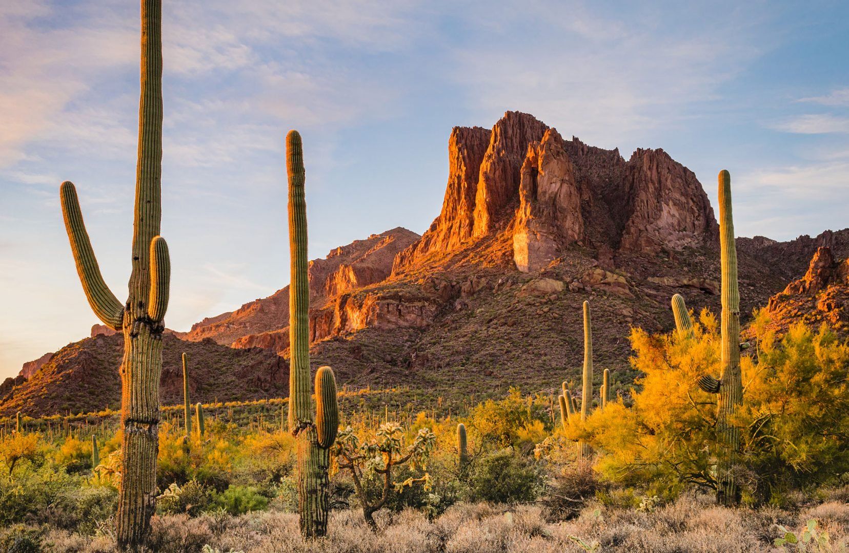 米国最大のサボテンの種であるサガーロの紛れもない分岐した腕は、ワイルドウェストのホールドアップで驚いた店主の「ハンドアップ」の外観を与えます。ソノラ砂漠の一部を保護するサガロ国立公園は、これらの象徴的なサボテンを見るのに最適な場所です。高さ50フィートで200年の寿命があったため、最高の標本の多くは密猟者に対して微小削られています。