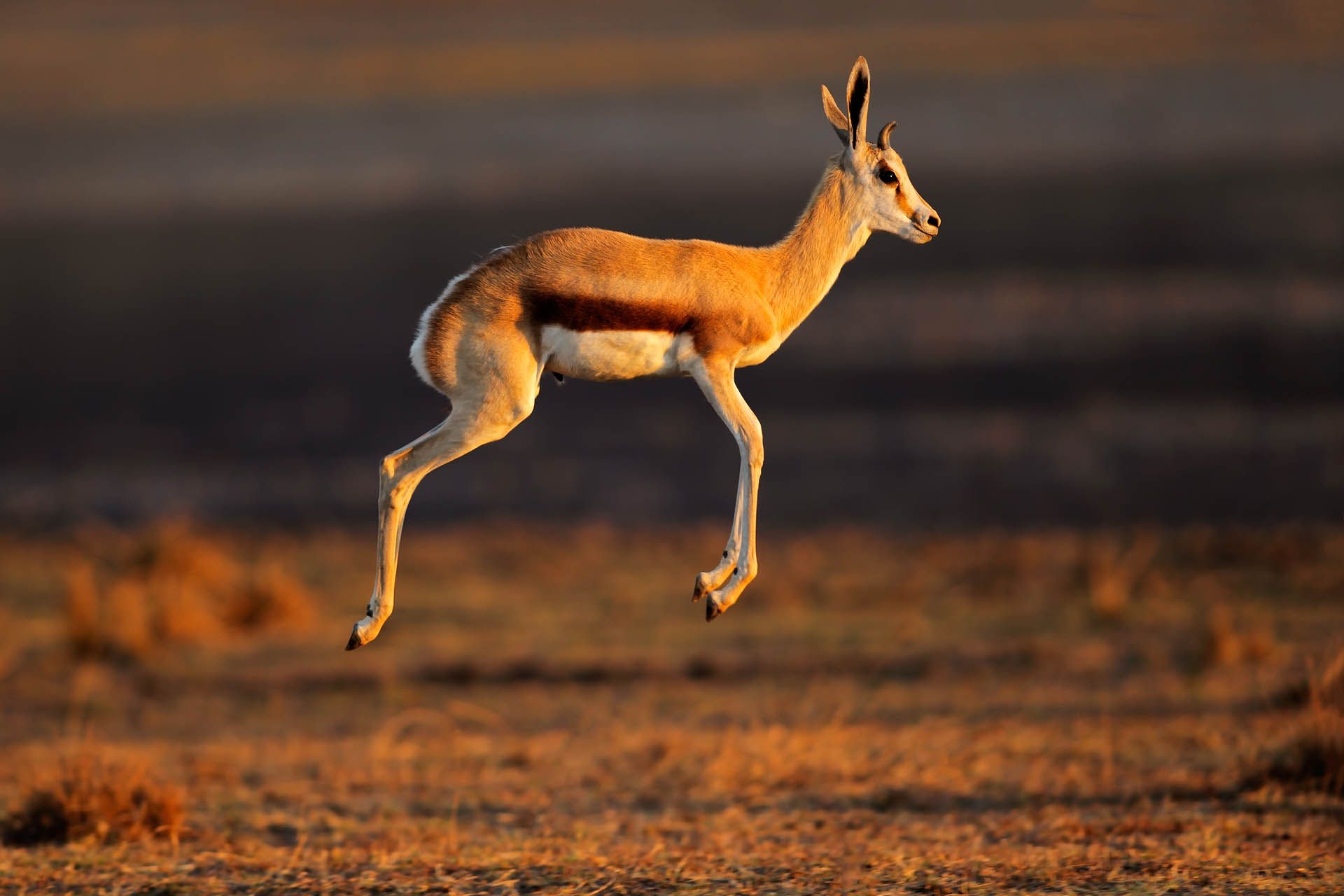 ジャンプするスプリングボック アンテロープ、またはプロンク、南アフリカ © EcoPrint/Shutterstock