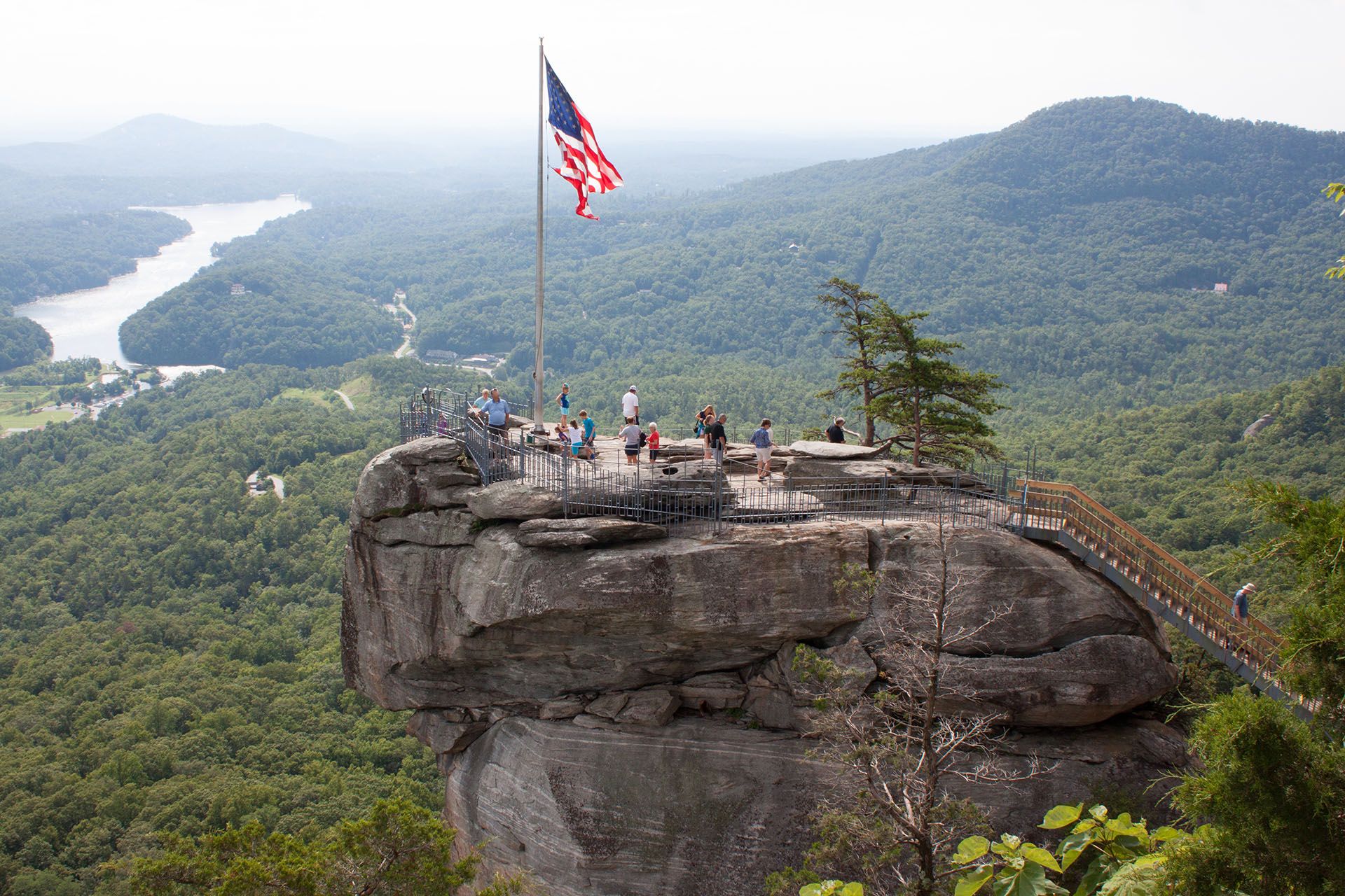 US-64/74A 沿いのパークウェイから 25 マイル南東にある、天然の花崗岩の塔です。チムニーロックヒッコリーナット峡谷のほぼ切り立った側面から突き出ています。エレベーターで山体を通って 26 階まで上がった後は、印象的な崖の上の保護された歩道に沿って歩くことができます。