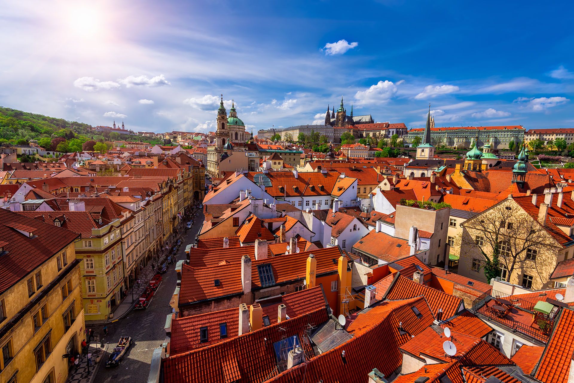 世界最大でプラハのトップアトラクションの 1 つであるプラハ城に部屋を詰めることができれば、チェコの首都の最高の観光スポットが目の前にあり、街も足元にあります。市内中心部を見下ろすこの岬に大勢の観光客が訪れることを期待している人は、このプラハ地区がどれほど静かで、ほとんど田舎に感じられるか驚くかもしれません。