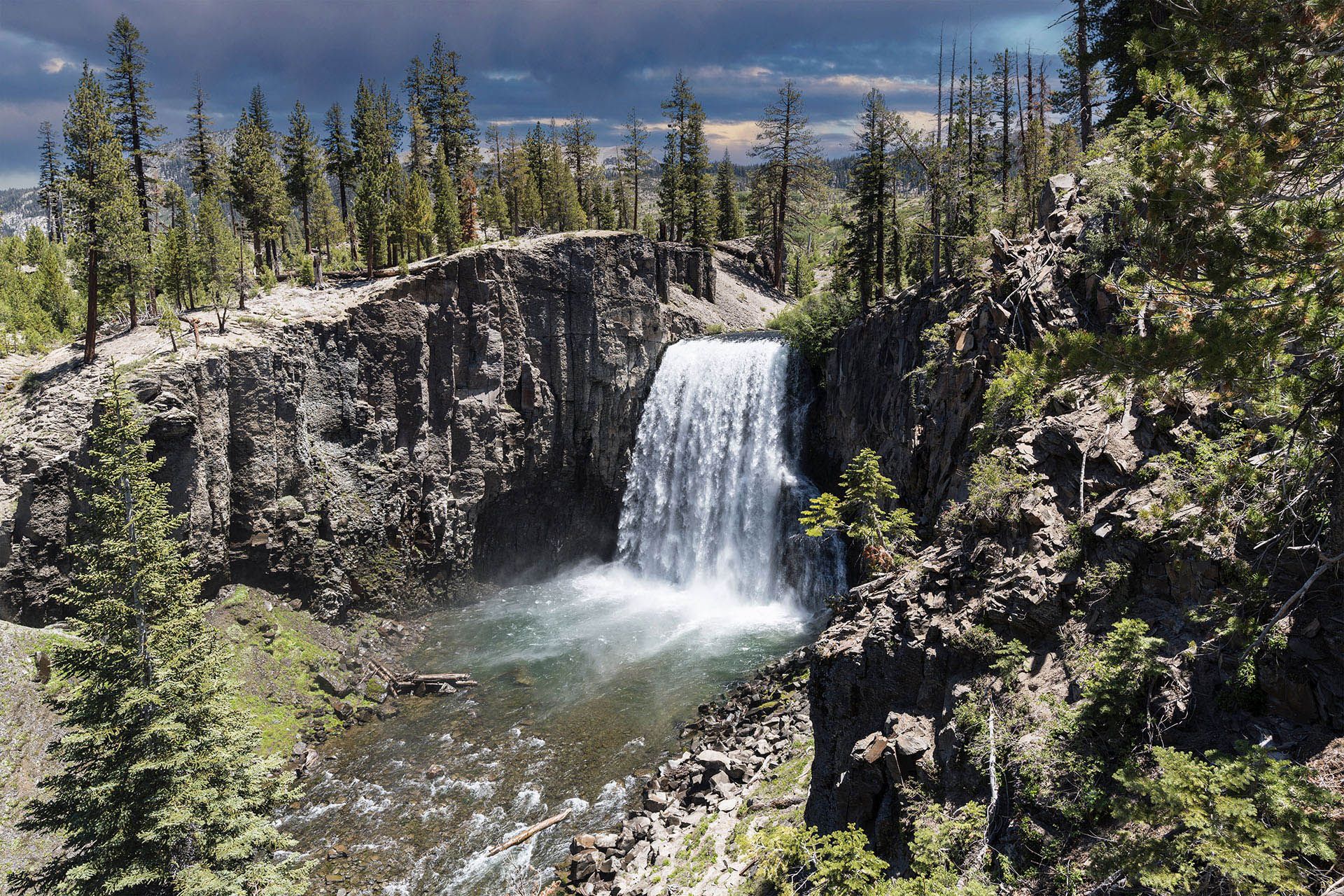 カリフォルニア州シエラネバダ山脈のデビルズ・ポストパイル、レッズ・メドウ、マンモス・レイク近くのレインボー滝の眺め © trekandshoot/Shutterstock