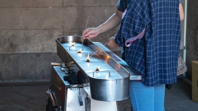 以前は、7つの香のバーナーがあり、訪問者は敷地内を歩き回り、香を1つずつ提供していました。ただし、現在、香のバーナーは1つしかなく、ろうそくの使用は禁止されています。現在の慣行は、最初に香を照らし、歩き回ってから、メインホールの香のバーナーに置くことです。