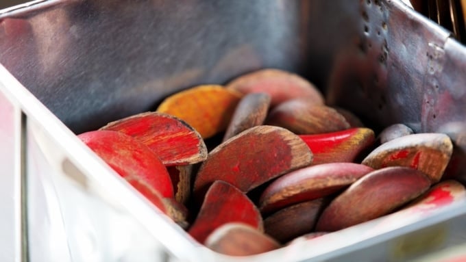 2つの赤い三日月形の木製の部分を投げて、オミクジを描いても大丈夫かどうか尋ねます。一方のピースが前面を示し、もう一方のピースが裏側を示している場合、それはイエスです。ただし、両方のピースが前面または背面のいずれかを示している場合、質問を変更して再びピースを投げる必要があります。このプロセス中にあなたの名前と住所を言うことが重要です。