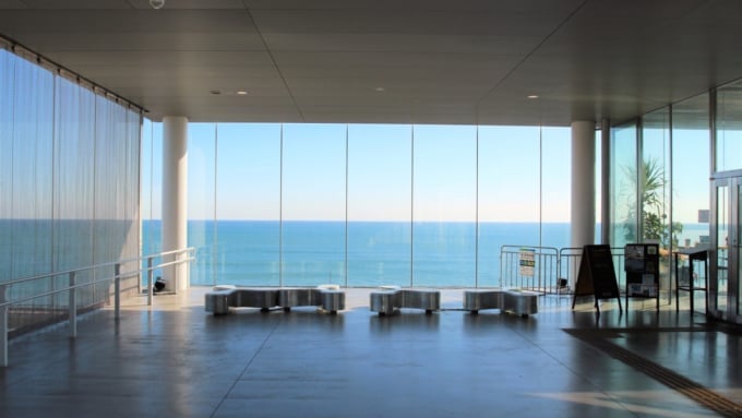 海はガラスの壁の建物の外に広がっているので、自由な通路に沿って歩くと地平線が見えます。青い海と青い空はとても近く、息をのむような景色です。日立駅のデザインは、元々日立市出身の建築家カズヨ・サジマによって監督されました。