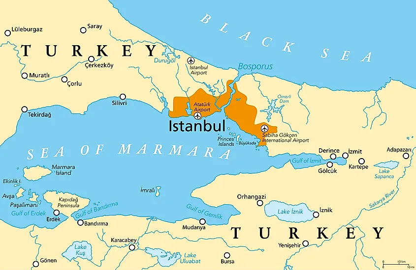 イスタンブールの一部は、トルコのヨーロッパ地域、ギリシャ北東部、ブルガリア南東部にまたがるトラキアとして知られる地域の南東部、ヨーロッパにおけるトルコの小さな拠点に位置しています。トルコのトラキア地方は、北はブルガリア、北東は黒海、南はマルマラ海、西はギリシャ、東はトルコのヨーロッパ地域とアナトリアを隔てる非常に戦略的なボスポラス海峡に接しています。興味深いことに、イスタンブールの一部はアナトリアにあり、したがってアジアの一部ですが、実際にはこの都市はヨーロッパで最も人口の多い都市とみなされており、人口は 1,500 万人以上です。